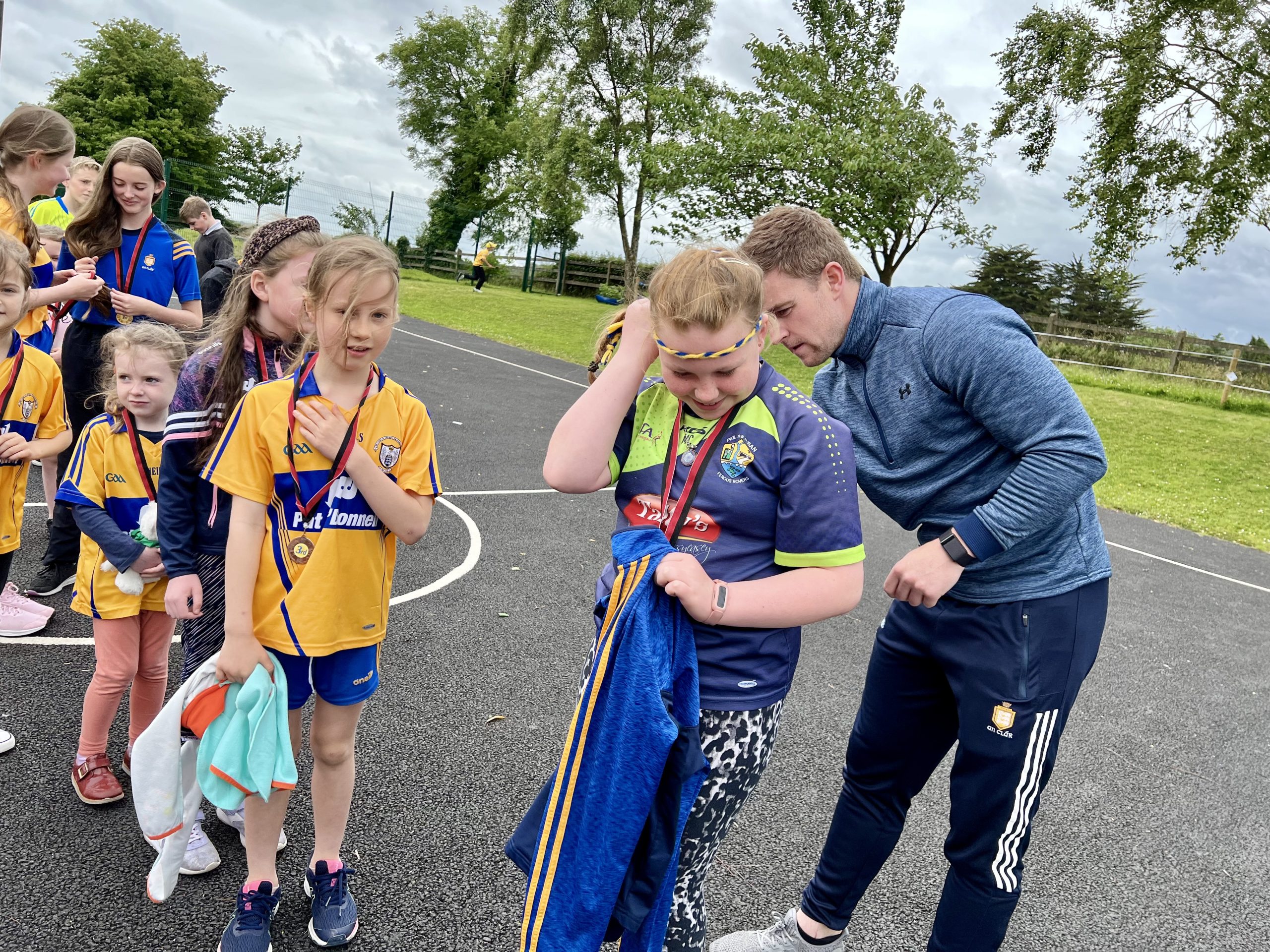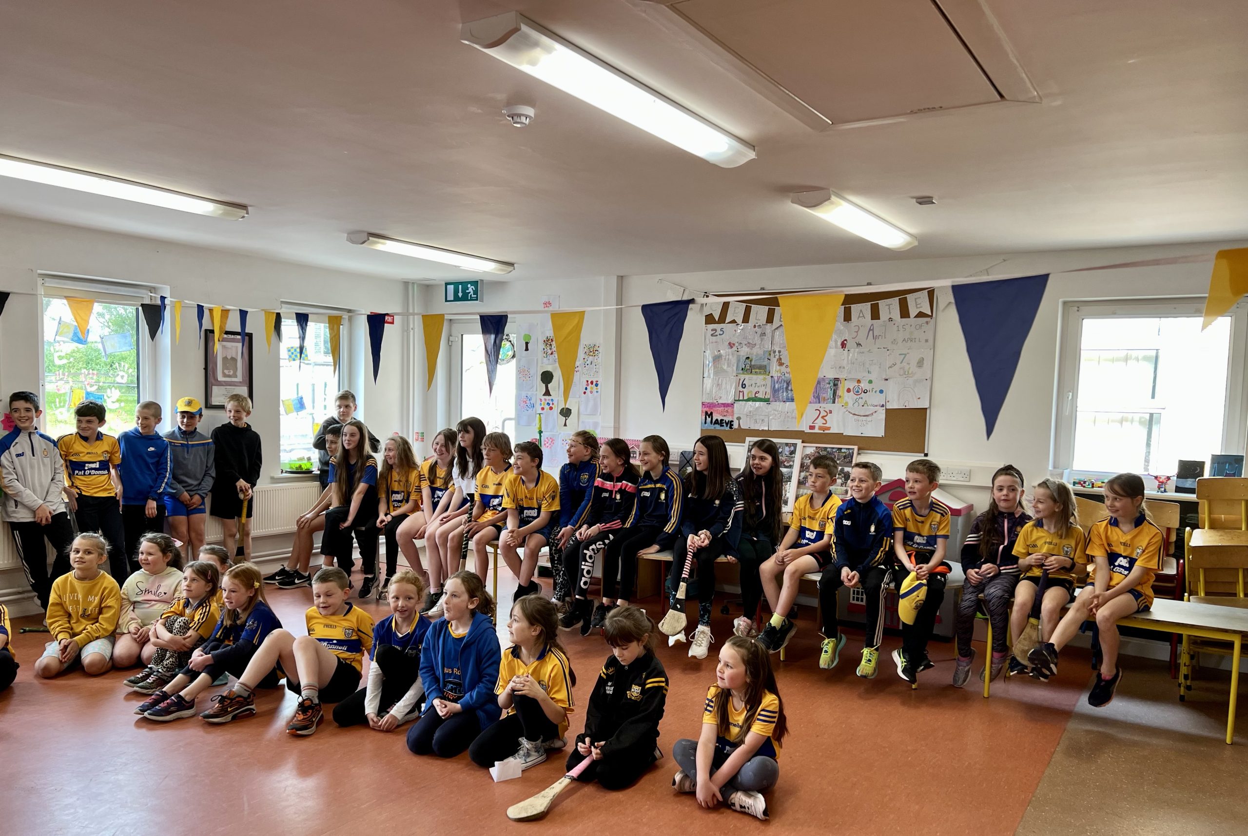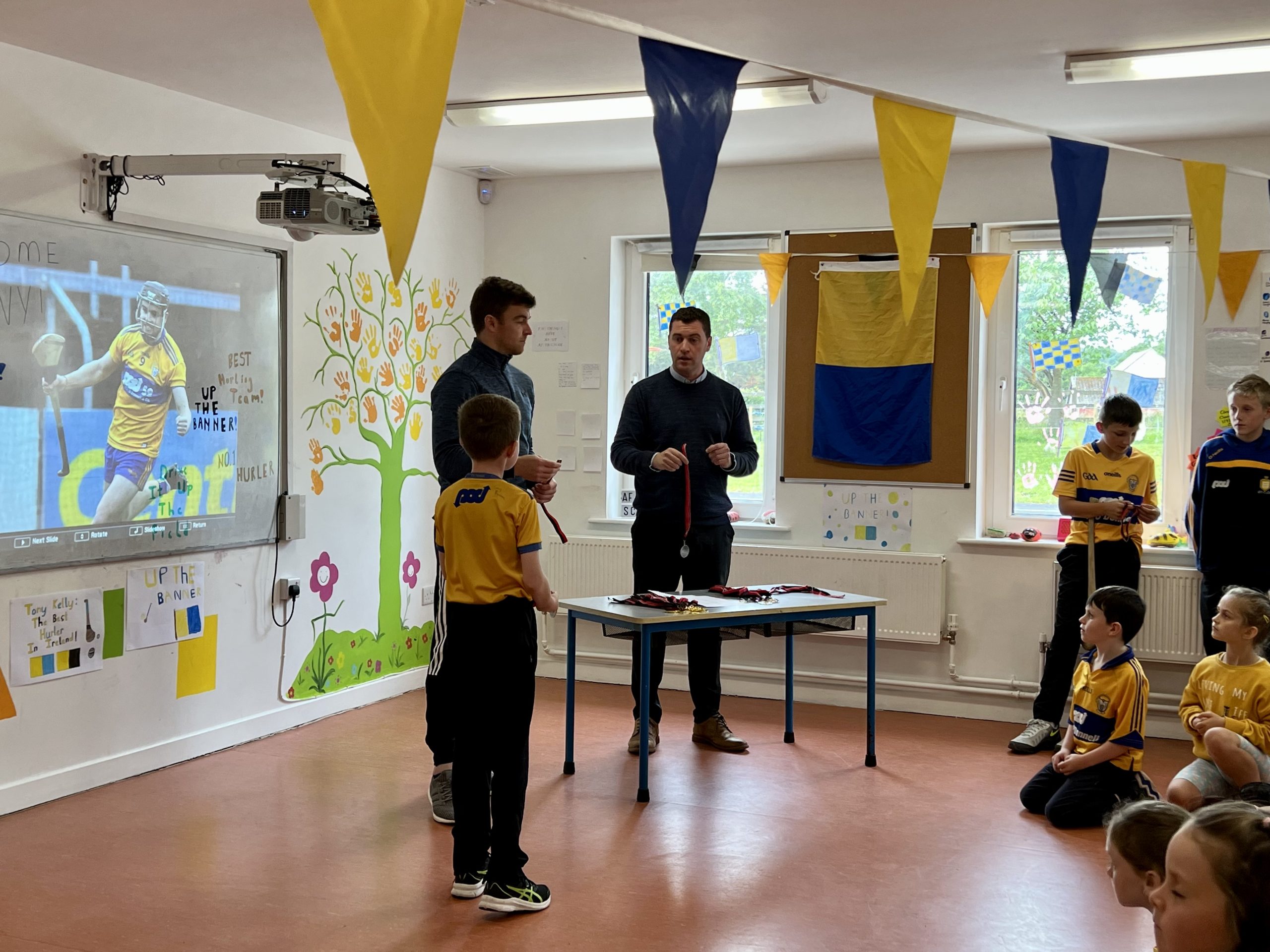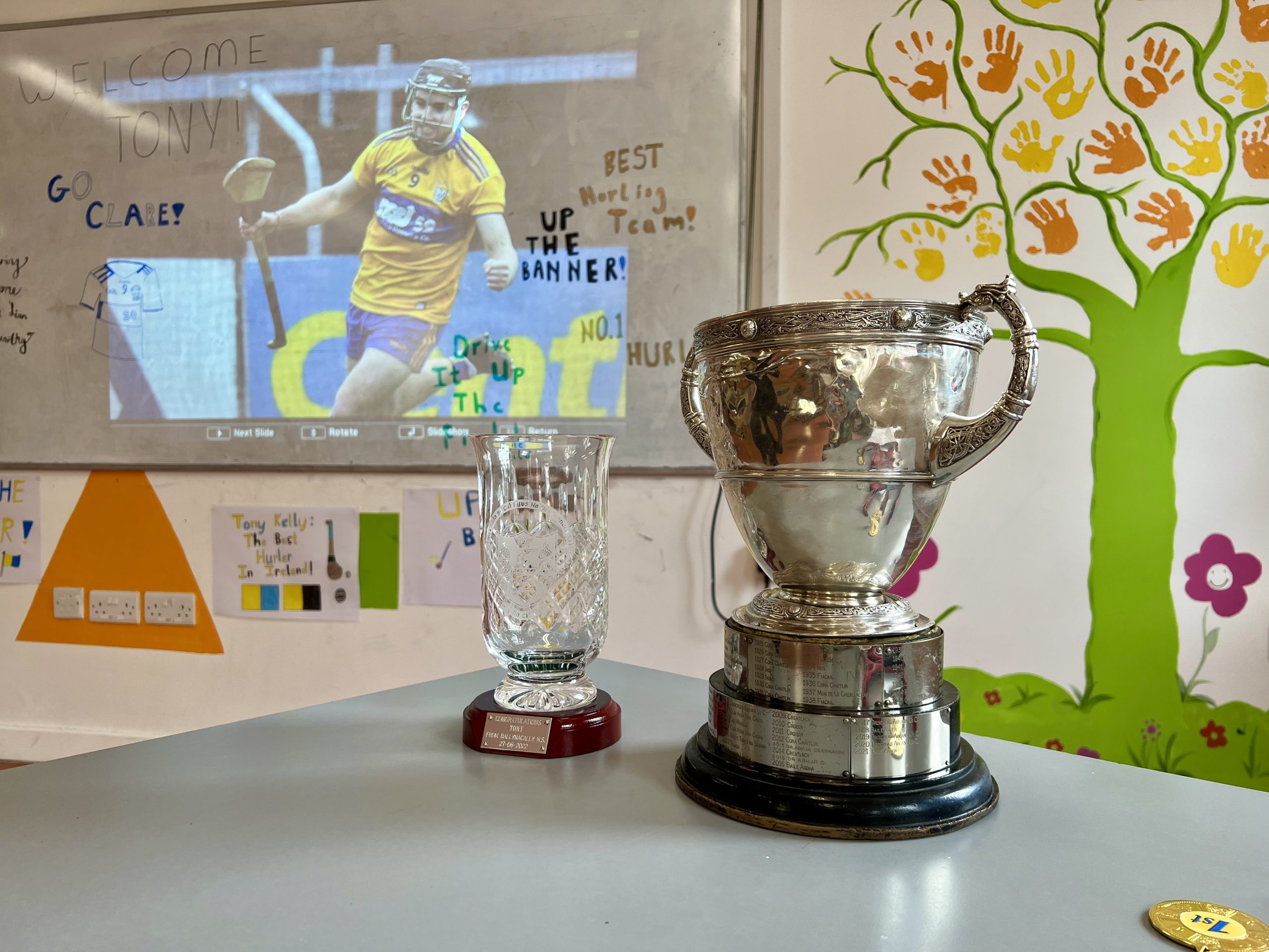 At the end of the school year, Tony Kelly kindly visited us to present the Sports Day medals to all of the pupils and to show us the Canon Hamilton cup. Tony, a past pupil of the school, held a question and answer session with the children. Our aspiring hurlers even got the chance to have a puc around with Tony on the yard. In recognition of Tony’s fourth All-Star award, the school made a presentation to him. We are looking forward to Tony returning to us again, he might even bring Liam!